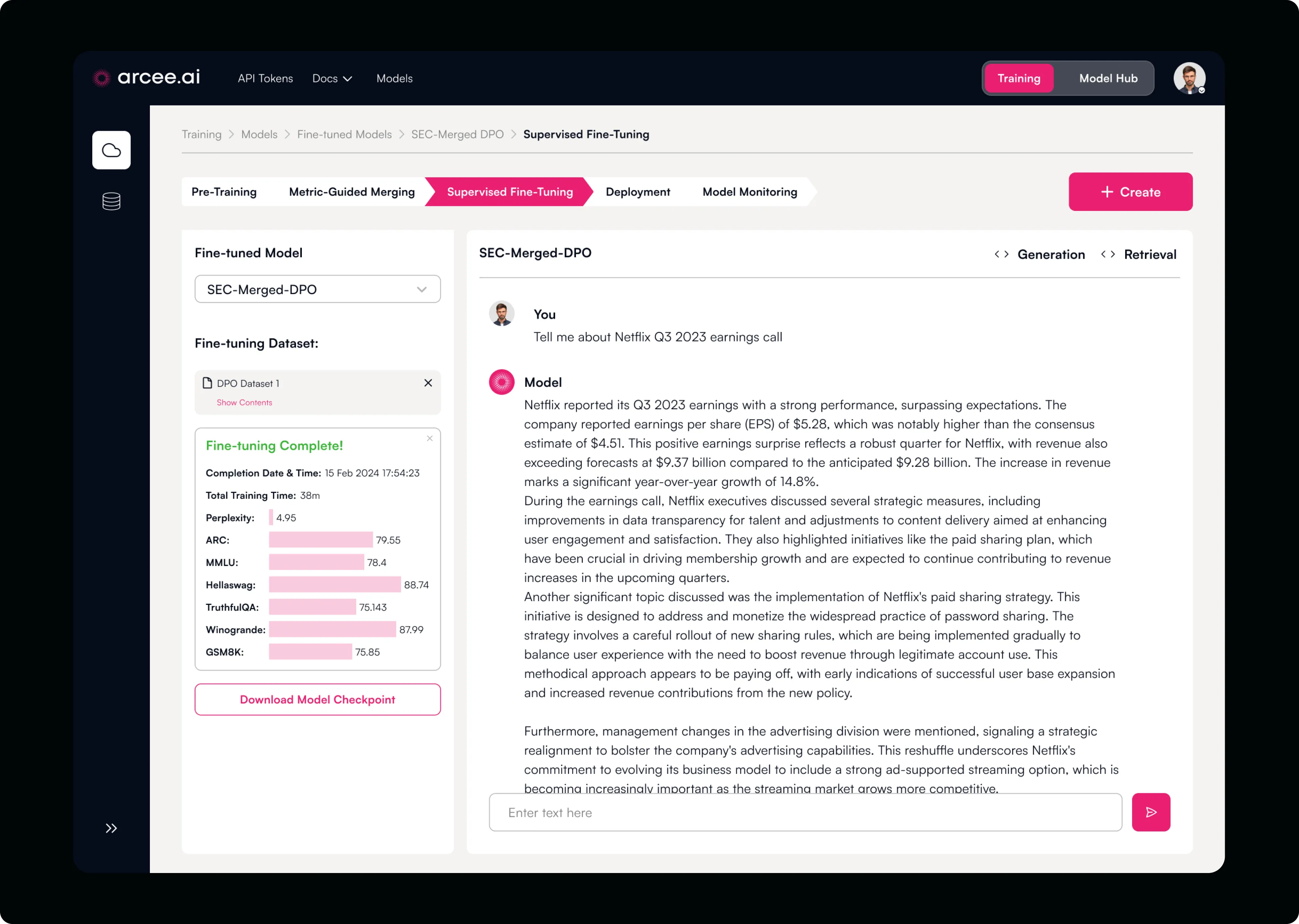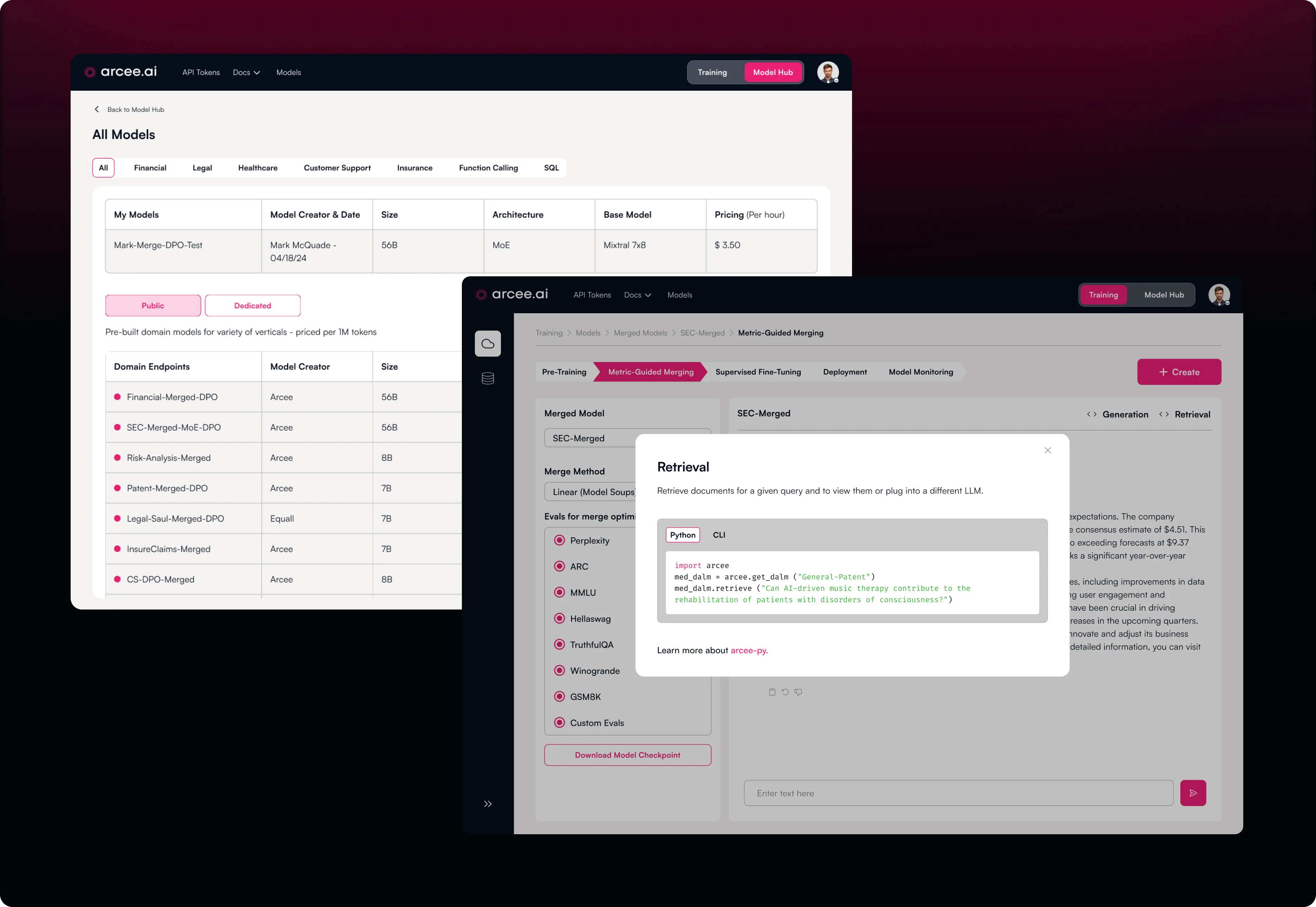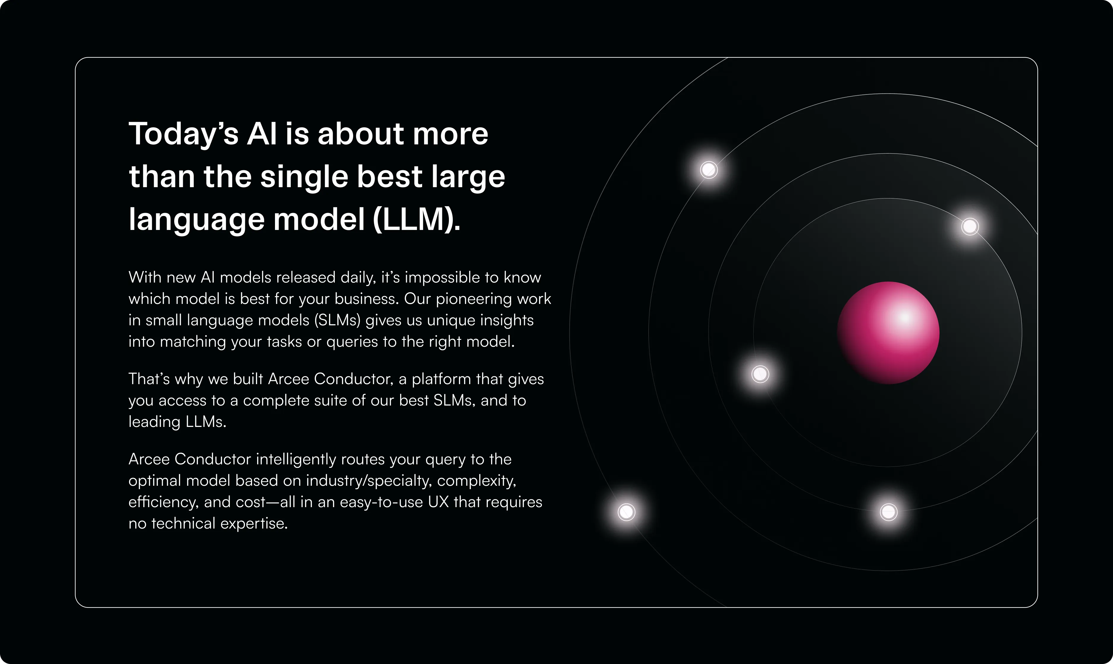Arcee AI makes it easy to build custom AI workflows and purpose driven AI Agents. Powered by industry-leading SLMs.