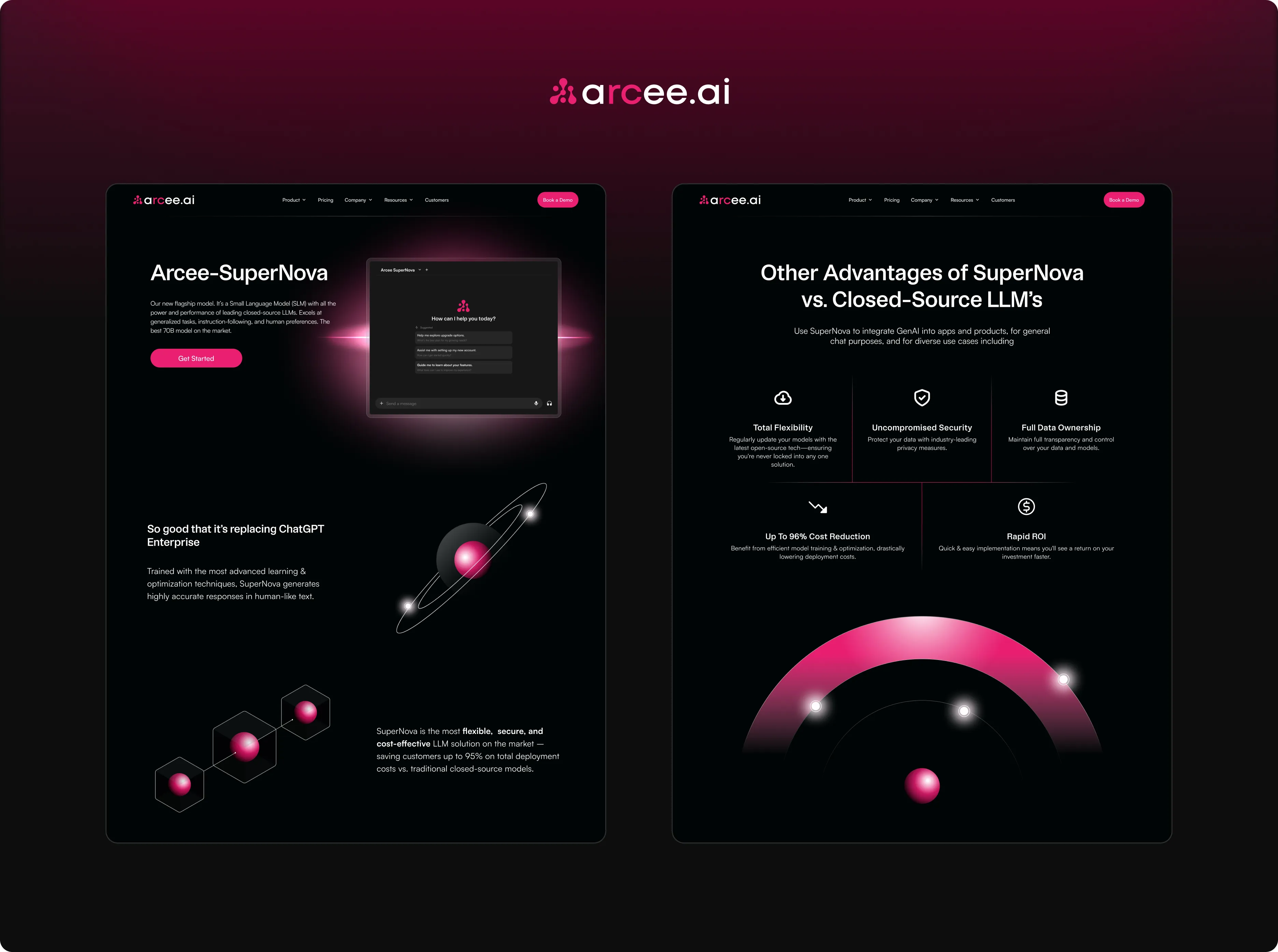 Arcee was a rapidly expanding company that required a dedicated Design and Webflow team to push their initiatives. This included a complete rebranding, Product Designs, Graphics and Animations.