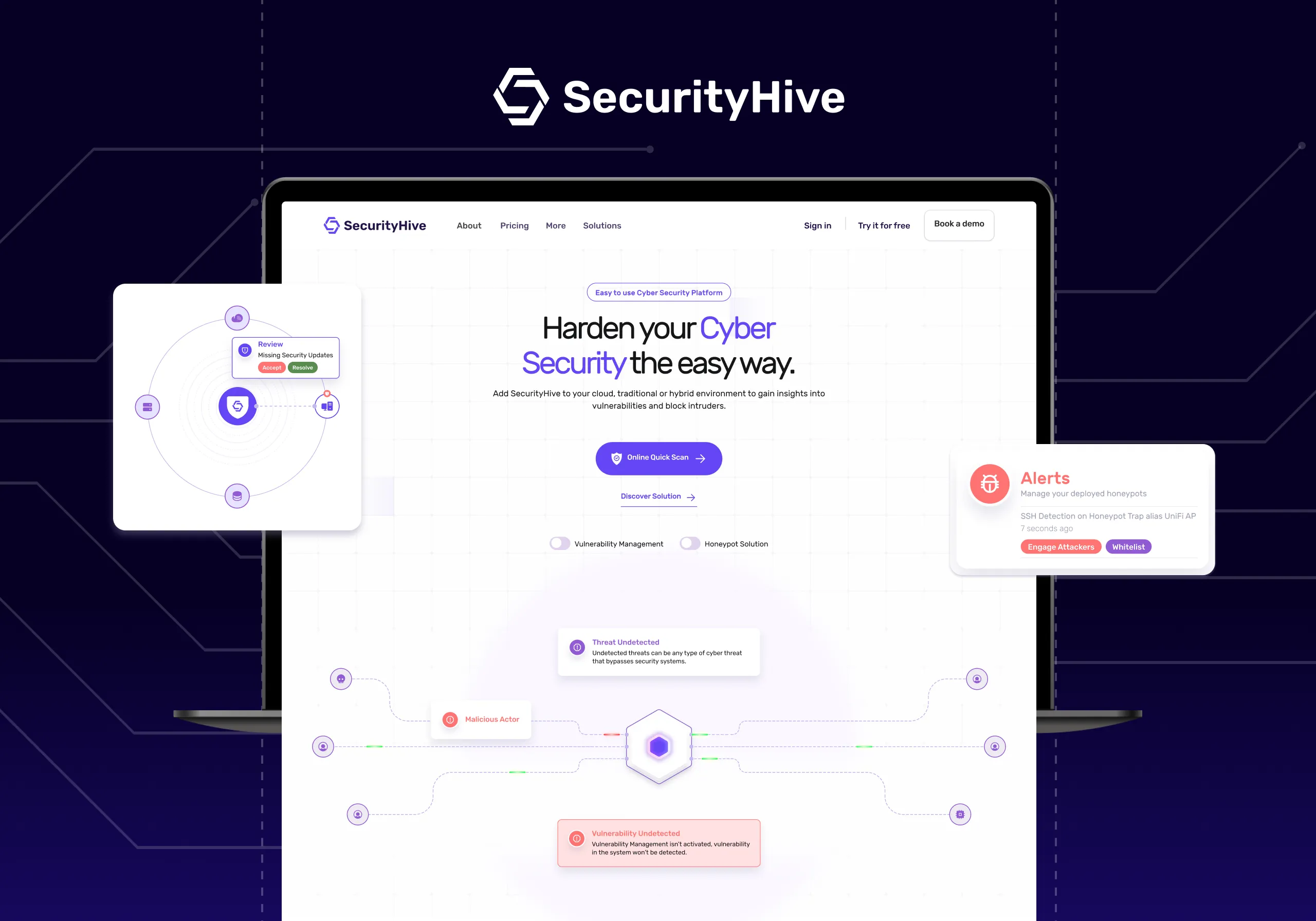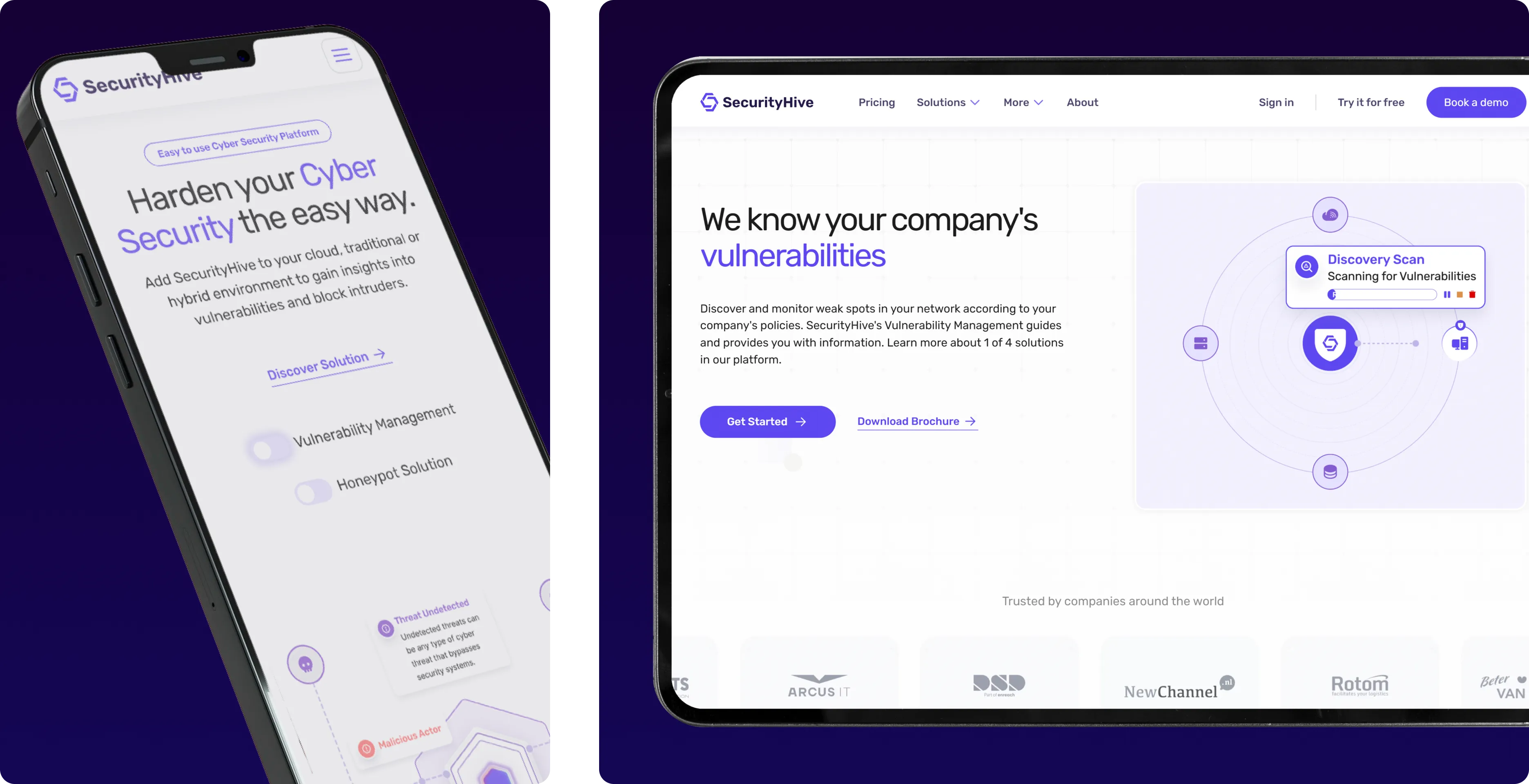 SecurityHive had big plans for their cybersecurity platform, but their brand and website weren't keeping up. We partnered with them for a complete overhaul - new branding, website redesign, and app interface - to match where they were headed as a company.